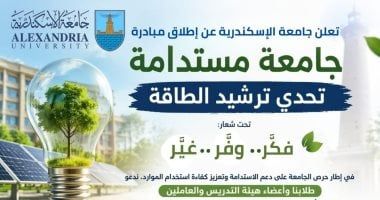 الإثنين، 06 أبريل 2026 10:40 صأعلنت جامعة الإسكندرية عن إطلاق مبادرة "جامعة مستدامة: تحدي ترشيد الطاقة"، تحت شعار "فكّر.. وفّر.. غيّر"، وذلك بمشاركة طلاب وأعضاء هيئة التدريس والعاملين بمختلف كليات ومعاهد الجامعة، بهدف خلق بيئة تفاعلية تجمع منتسبى الجامعة، للمساهمة بفاعلية في بناء مستقبل أكثر استدامة.