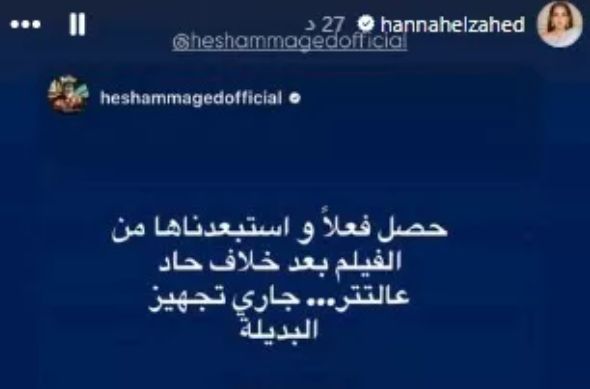 وبدأت الواقعة عندما نشر هشام ماجد عبر خاصية ستوري على حسابه الرسمي بموقع إنستجرام تعليقًا مازحًا، أشار فيه إلى استبعاد هنا الزاهد من فيلمه الجديد بسبب خلافات مع فريق العمل، قائلًا: حصل فعلا واستبعادها من الفيلم بعد خلاف حاد عالتتر وجاري تجهيز البديلة.