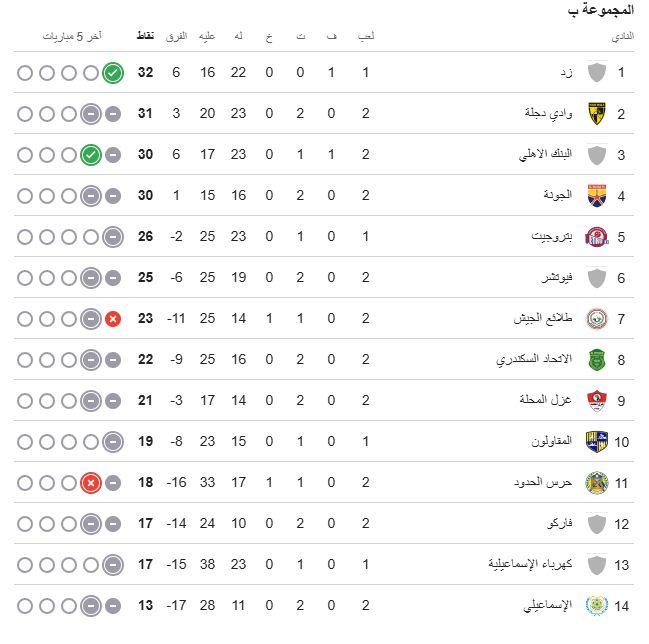 نتائج مباريات الجولة الثانية بمجموعة الهبوط