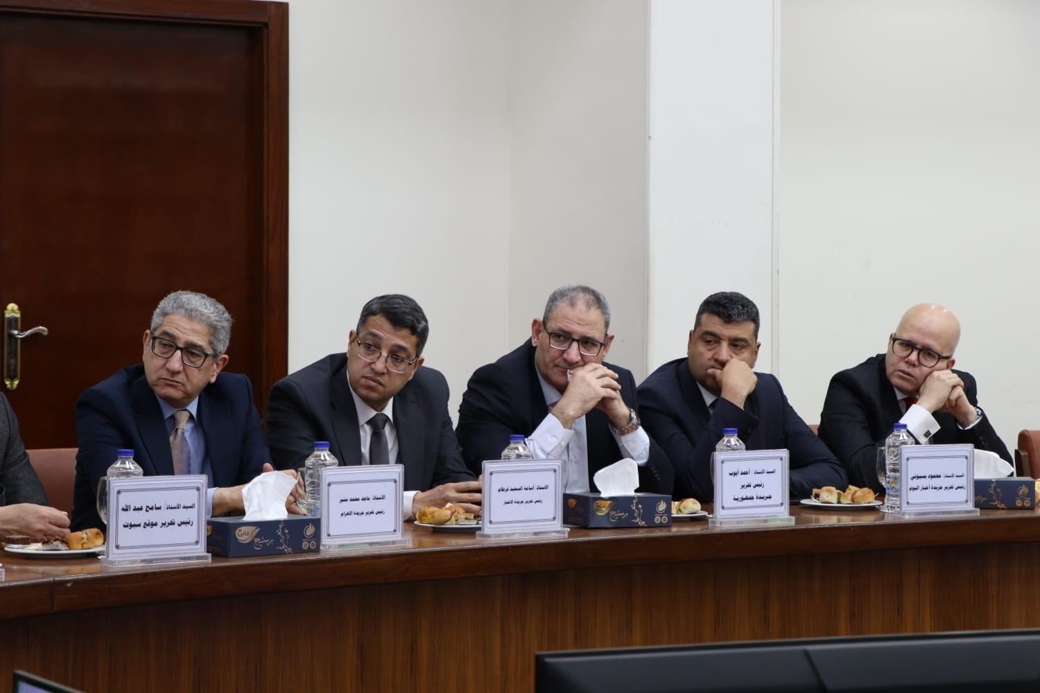 وشدد الشوربجي على أهمية التحديد المستمر لنقاط القوة والضعف في المؤسسات والإصدارات ووضع الخطط السريعة لتعظيم نقاط القوة ومعالجة أي مواطن ضعف، وقال سنواصل تقديم كافة أوجه الدعم للمؤسسات حتى اللوجستيات والتحديات في بعض الملفات العالقة مع المحافظات وغيرها من جهات، وأشار إلى أهمية الترشيد والالتزام بتوجيهات الدولة في هذا الشأن مع الحرص على استمرار العمل بأعلى جودة ودقة.