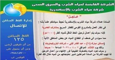 أرقام التواصلوناشدت مياه الإسكندرية، المواطنين، توفير إحتياجاتهم من المياه خلال تلك الفترة، وعند الحاجه يرجي الاتصال علي رقم 125 من اي خط أرضى او علي 035815700.