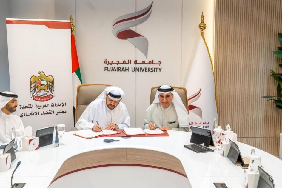 وقّعت جامعة الفجيرة، ومجلس القضاء الاتحادي ممثلاً في محكمة الفجيرة الاتحادية الابتدائيّة اتفاقية تعاون مشترك تهدف إلى دعم مجالات التدريب والتأهيل القانوني، وتبادل الخبرات.
