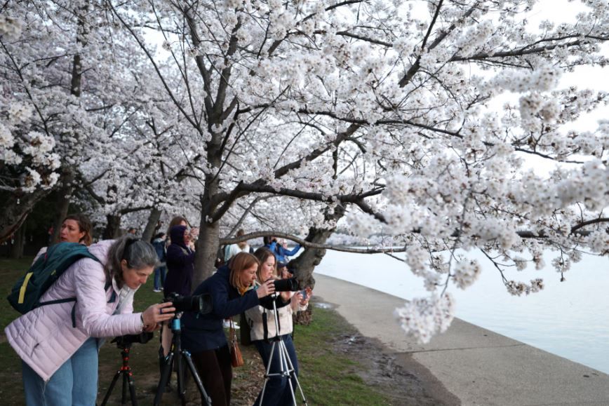 تفتحت أزهار الكرز وتزينت الحدائق والشوارع والميادين من العاصمة اليابانية طوكيو إلى واشنطن الأمريكية، حيث اكتست الحدائق في واشنطن مع وصول أزهار الكرز إلى ذروة ازدهارها في ربيع عام 2026، في مشهد سنوي يخطف الأنظار ويجذب الزوار من مختلف أنحاء العالم، وذلك حسبما نشر موقع وكالة الأنباء رويترز صورا.
