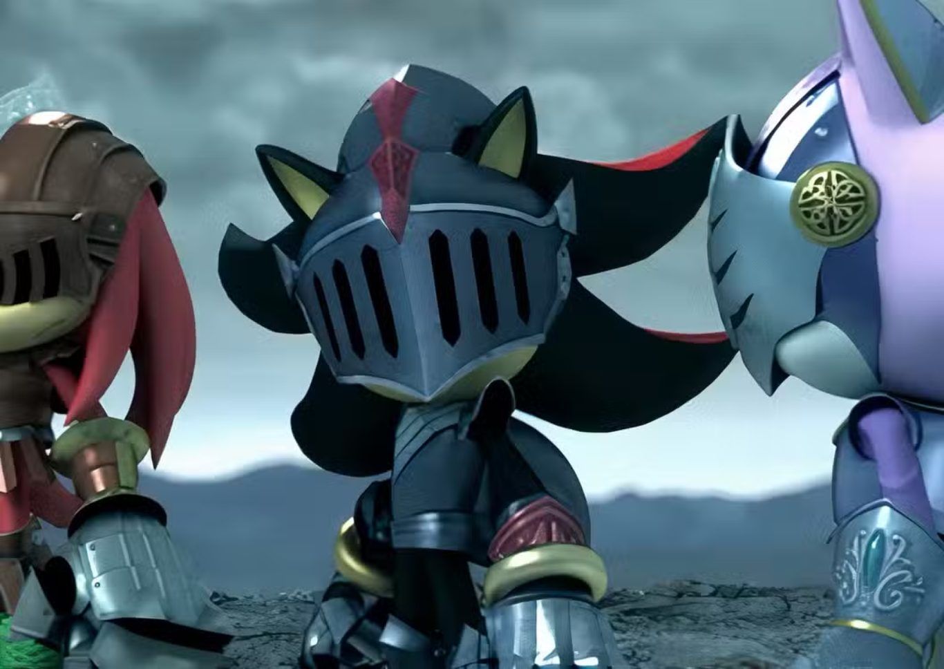 في مسار اللعبة يطلب Sonic من الحداد المستلهم من Miles أن يشحذ له سيفه ثم يدخل في مواجهات مع شخصيات أخرى مثل Lancelot المستوحى من Shadow و Gawain المبني على Knuckles و Percival المستلهمة من Blaze قبل أن يلتقي في النهاية Lady of the Lake التي تحمل ملامح مستوحاة من Amy. لا شك أن رؤية هذه الشخصيات وهي ترتدي دروع الفرسان وتحمل الطابع الأسطوري كانت لافتة من الناحية الشكلية لأن التصاميم نفسها بدت جميلة ومثيرة بصريًا وقدمت نسخًا مختلفة ومحببة من وجوه يعرفها الجمهور جيدًا. لكن هذه الجاذبية البصرية لم تكن كافية لتعويض المشكلة الأعمق وهي أن الشخصيات على مستوى الكتابة والحضور الدرامي لم تتجاوز غالبًا كونها محطات إلزامية داخل تقدم اللعبة أو خصومًا يجب هزيمتهم لأن القصة تتطلب ذلك.