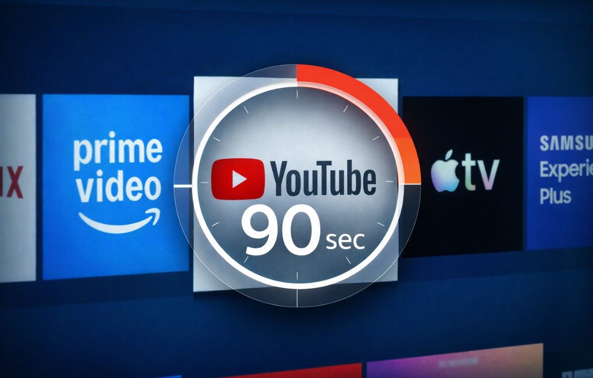 تتجه يوتيوب إلى تكثيف عرض الإعلانات باختبارها إعلانات غير قابلة للتخطي تصل مدتها إلى 90 ثانية لمستخدمي تطبيقها في أجهزة التلفاز، مما يجعل المنصة تتحول تدريجيًا إلى نموذج أقرب إلى التلفزيون التقليدي.