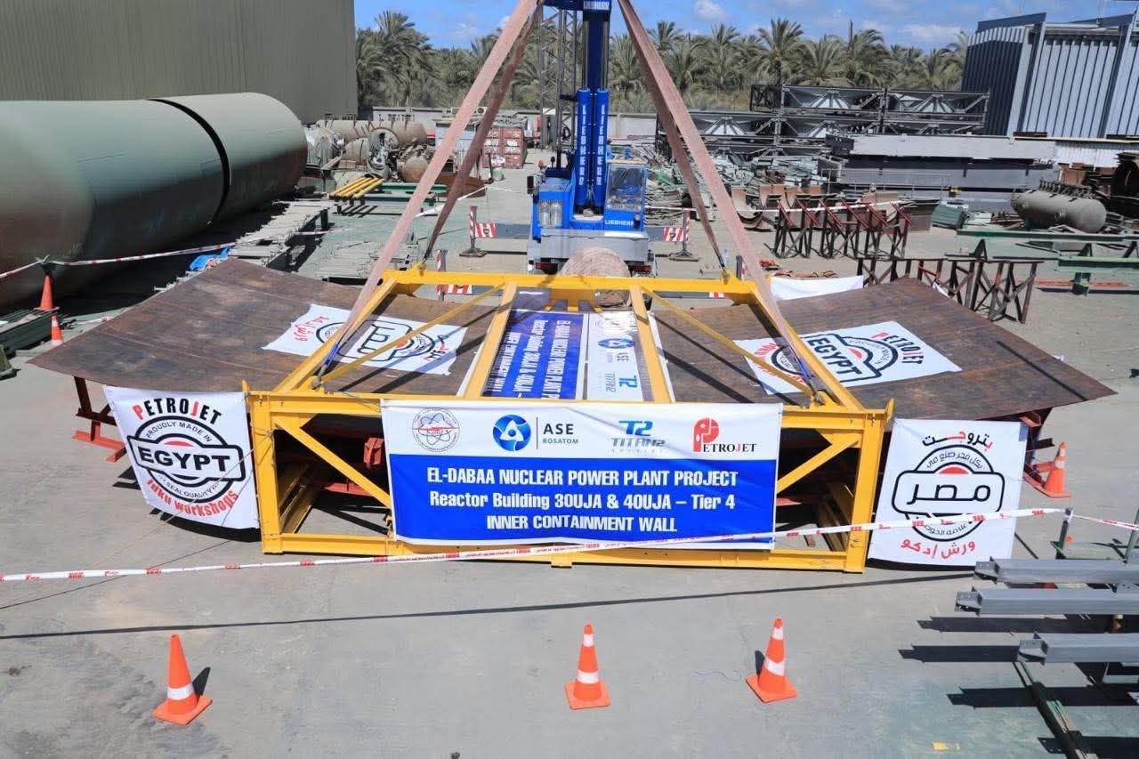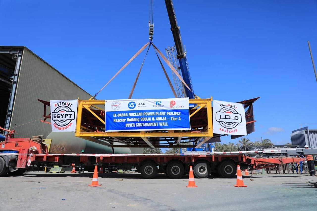 الأربعاء، 08 أبريل 2026 09:24 مضمن التوجه العام لوزاره البترول والثروة المعدنية وترسيخًا لمكانتها كإحدى القلاع الصناعية الرائدة على المستويين المحلي والدولي، نجحت شركة بتروجت في الانتهاء من تصنيع اول مكونات المستوى الرابع من وعاء الاحتواء الداخلي (NuclearReactor Inner Containment Metal Shells) للمفاعل النووي الثالث بمحطة الضبعة النووية لإنتاج الكهرباء، وبدأ أعمال النقل إلى موقع المشروع.