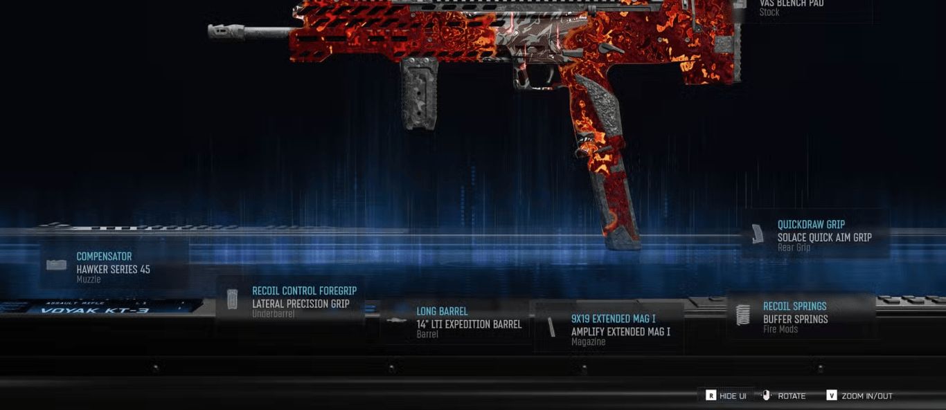 ويعتمد هذا البناء الأساسي على منح السلاح قاعدة قوية من حيث التحكم والثبات وسرعة الاستجابة. فاختيار Hawker Series 45 يساعد على تهدئة سلوك السلاح أثناء الإطلاق ويجعل التحكم فيه أكثر عملية. بينما يضيف Lateral Precision Grip دعما مهما للثبات ويخفف من الارتداد الجانبي الذي يربك التصويب في المواجهات المستمرة. أما Amplify Extended Mag I فيمنحك سعة أفضل للذخيرة وهو أمر مفيد جدا عندما تدخل في اشتباكات متتابعة أو تواجه أكثر من خصم في وقت قصير. ويأتي VAS Blench Pad ليعزز الشعور العام بالتحكم ويجعل السلاح أكثر جاهزية في التحركات السريعة. ثم يكتمل البناء مع Buffer Springs التي تسهم في جعل الإطلاق أكثر سلاسة وتحافظ على مستوى أفضل من السيطرة أثناء القتال.