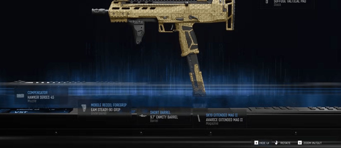 ويأتي هذا البناء ليخدم هوية السلاح بصورة واضحة جدا. فإضافة Hawker Series 45 تساعد على تهدئة السلاح وجعل إطلاقه أكثر تماسكا في اللحظات التي يحتاج فيها اللاعب إلى الحفاظ على السيطرة داخل اشتباك سريع ومضغوط. أما 9.7” Enmity Barrel فيمنح السلاح دعما مهما من ناحية الأداء العام ويجعله أكثر ملاءمة للالتحامات القريبة التي تتطلب سرعة مع استقرار جيد. ثم يأتي EAM Steady-90 Grip ليعزز التحكم ويمنح اللاعب ثقة أكبر أثناء تتبع الخصم عند الإطلاق المستمر. وفي الوقت نفسه يوفر Avarice Extended Mag II سعة ذخيرة أفضل تسمح لك بخوض اشتباكات أطول أو مواجهة أكثر من خصم من دون الحاجة إلى إعادة التلقيم بسرعة مزعجة. ويكمل Suffuse Tactical Pad هذا البناء من خلال دعم الحركة والاستجابة وجعل السلاح أكثر جاهزية لأسلوب اللعب العدواني السريع.