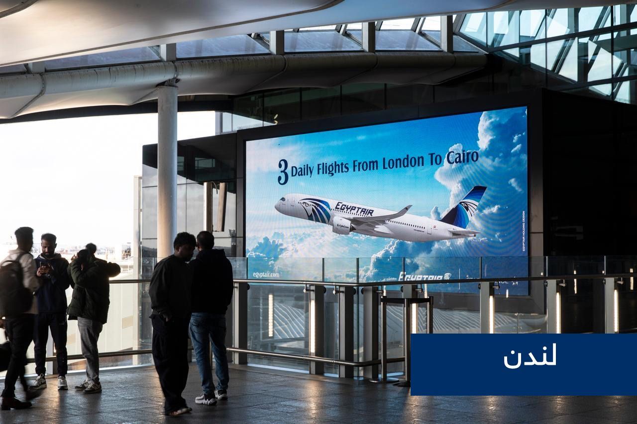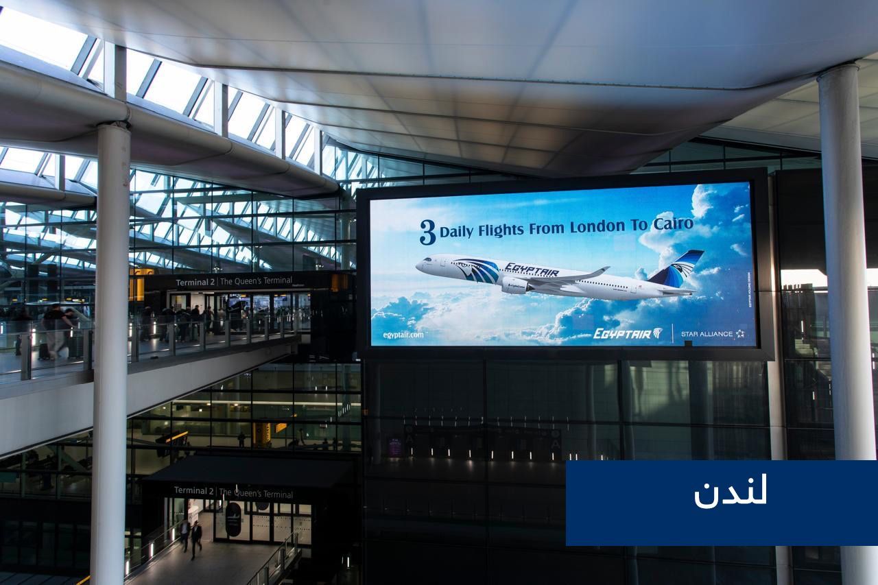 الخميس، 09 أبريل 2026 01:14 مفي إطار خطتها لتعزيز تواجدها الدولي وجذب المزيد من العملاء، أطلقت مصر للطيران حملات تسويقية وإعلانية موسعة في عدد من الدول والعواصم الأوروبية، وشملت هذه الحملات المملكة المتحدة، من خلال إعلانات متنوعة قامت الشركة بتنفيذها داخل مبنى الركاب بمطار لندن هيثرو ترويجًا للرحلات اليومية المباشرة بين القاهرة ولندن والتي تصل إلى 3 رحلات يومية، إضافة إلى الحملات التسويقية التي أطلقتها في مدينة جنيف بسويسرا، وبراغ بجمهورية التشيك، وأثينا في اليونان، واسطنبول في تركيا، وفيينا في النمسا.