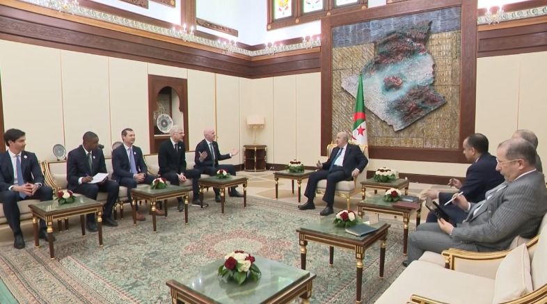 إستقبل رئيس الجمهورية عبد المجيد تبون، اليوم الخميس، جياني إنفانتينو رئيس الاتحاد الدولي لكرة القدم والوفد المرافق له.