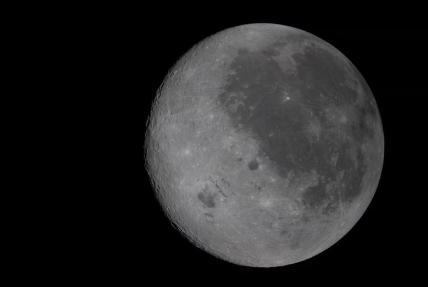 صورة مضاءة للقمر يظهر الجانب القريب لنصف الكرة الأرضية