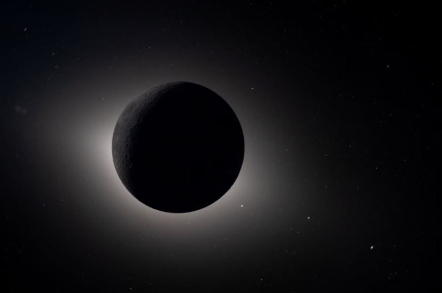 التقطت مركبة أوريون الفضائية التابعة لناسا صورة للقمر، مضاءً من الخلف بضوء الشمس أثناء كسوف شمسي، حيث تعكس الأرض ضوء الشمس على الحافة اليسرى للقمر، وهي أكثر سطوعًا بقليل، فيما تظهر البقعة الساطعة الظاهرة أسفل الحافة اليمنى للقمر مباشرةً وهي كوكب زحل وخلفه، تظهر البقعة الساطعة على الحافة اليمنى للصورة وهي كوكب المريخ، وذلك حسبما نشر موقع وكالة الأنباء رويترز صورا.