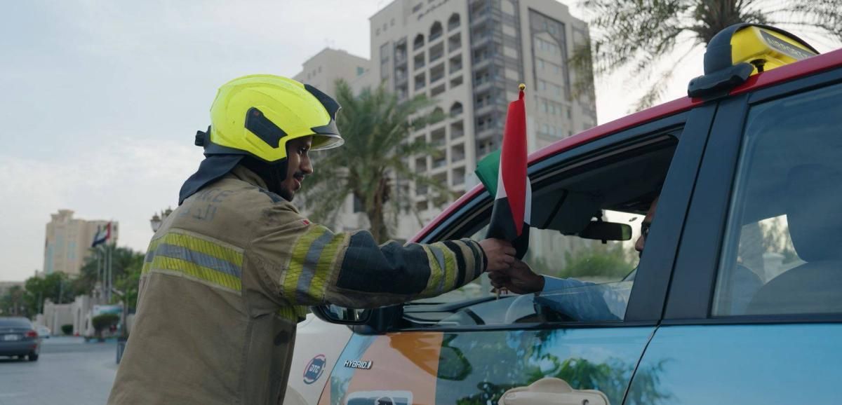 استجابة لحملة «فخورين بالإمارات» التي أطلقها صاحب السمو الشيخ محمد بن راشد آل مكتوم، نائب رئيس الدولة رئيس مجلس الوزراء حاكم دبي، رعاه الله، والتي دعا سموه من خلالها أبناء الإمارات والمقيمين على أرضها الطيبة إلى رفع علم الإمارات فوق المنازل والمؤسسات والمباني، وزّعت كل من شرطة عجمان، والإدارة العامة للدفاع المدني والإسعاف الوطني في عجمان، أعلام دولة الإمارات على المواطنين والمقيمين، في منطقة «مرسى عجمان».