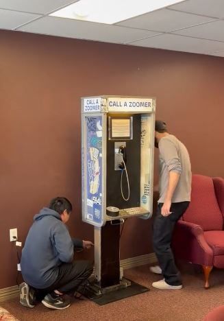 قامت المؤسسة بإعادة استخدام هاتفين عموميين قديمين ووضعهما فى موقعين مختلفين، الهاتف الأول، الذى يحمل اسم الاتصال بشخص من جيل طفرة المواليد، وُضع بجوار مقهى بافمنت فى حرم جامعة بوسطن، أما الهاتف الثانى، الذى يحمل اسم الاتصال بشخص من جيل الألفية، فتم تثبيته داخل مجمع سكنى لكبار السن فى رينو بولاية نيفادا، وعند رفع سماعة أى من الهاتفين، يتم الاتصال مباشرة بالهاتف الآخر، ما يتيح لأى شخص فى الموقع المقابل الرد وبدء محادثة فورية، بحسب ما ذكر موقع my modern met.