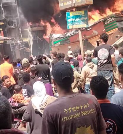 الحريق اشتعل بمخزن وامتد لمحل كشري