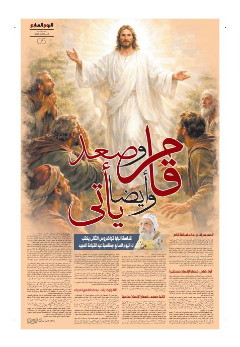 وتناول المقال صعود السيد المسيح باعتباره امتدادًا طبيعيًا للقيامة، موضحًا أنه ليس مجرد حدث تاريخي، بل دعوة لكل إنسان أن يسمو فوق الشهوات والأرضيات، ويعيش بقلب متجه نحو السماء.