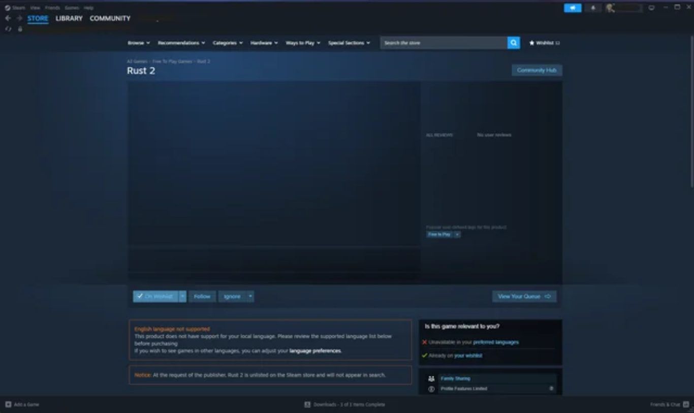 ورغم أن ظهور اسم Rust 2 بهذه الصورة كان كافيا لإشعال الحماس فإن المعلومات المتاحة من الصفحة نفسها بدت محدودة للغاية ولا تقدم أي تفاصيل فعلية يمكن الاعتماد عليها لفهم طبيعة المشروع أو موعده أو حجمه. فالصفحة المتداولة لا تعرض سوى اسم Rust 2 إلى جانب تصنيف يشير إلى أنها مجانية للعب دون وجود شرح موسع أو صور توضيحية أو عرض لمزايا اللعب أو أي بيانات تقنية يمكن أن تمنح المتابعين صورة أكثر وضوحا. وهذا الغياب الكامل للتفاصيل زاد من حالة الغموض وجعل الأمر مفتوحا على أكثر من احتمال.