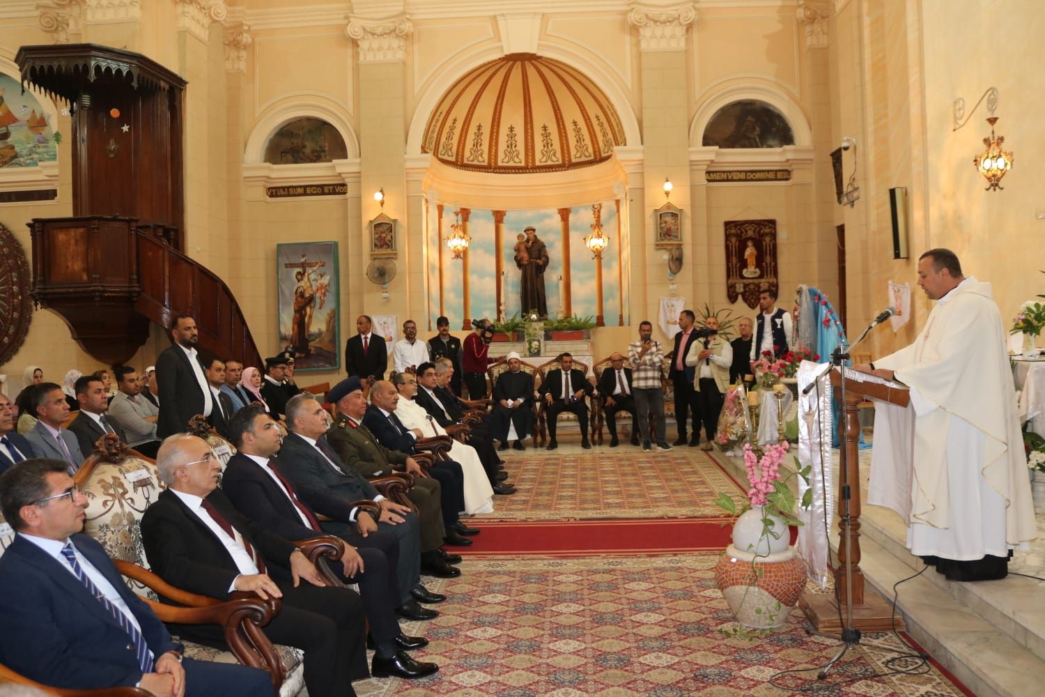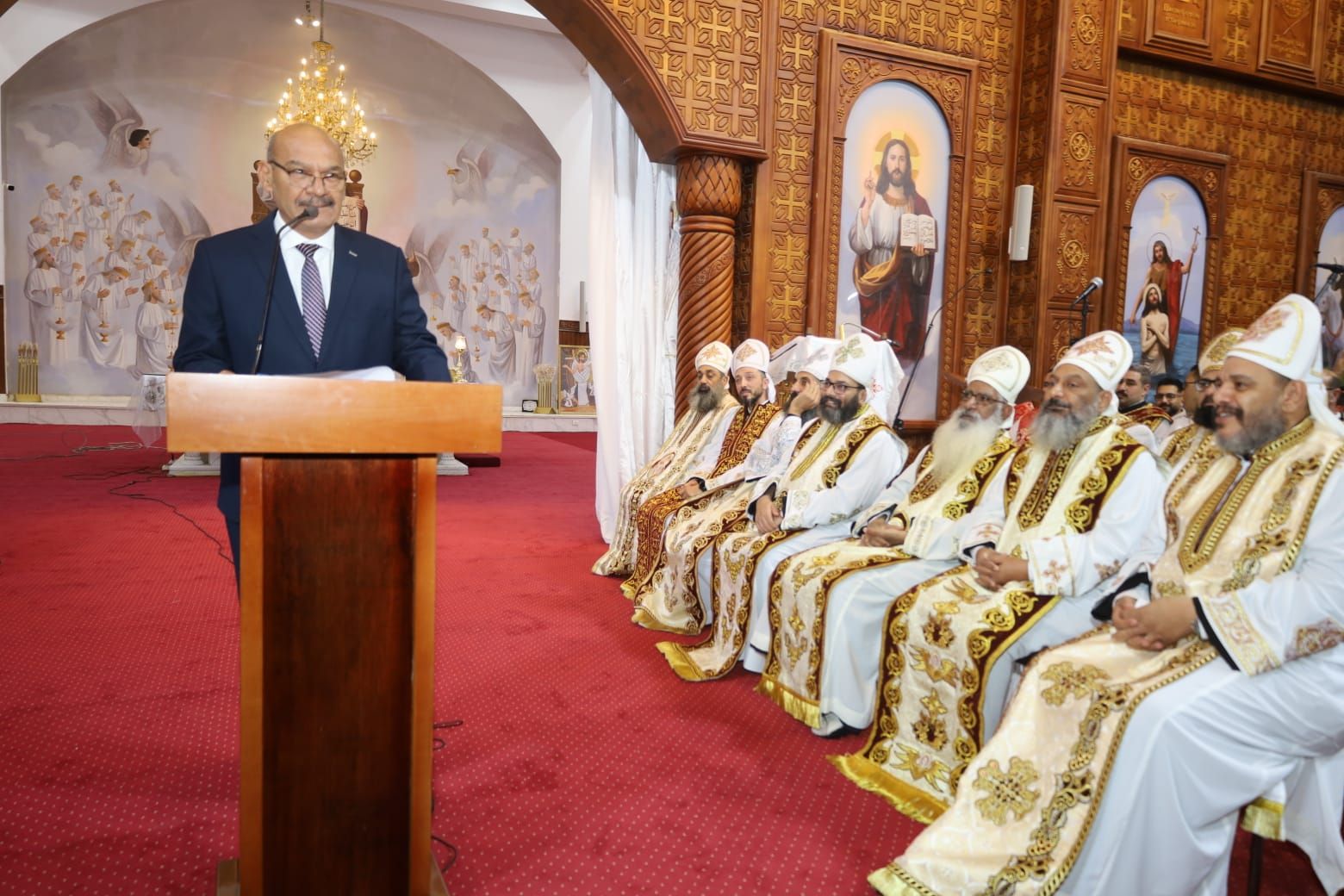تقديم التهانيتوجه المحافظ والقيادات الأمنية والشعبية إلى كنيسة العذراء اللاتين للاباء الفرنسيسكان بشارع سعد زغلول لتقديم التنهئة للأب جوزيف وهيب راعي الكنيسة وقيادات الكنيسة للتهنىة بالعيد.