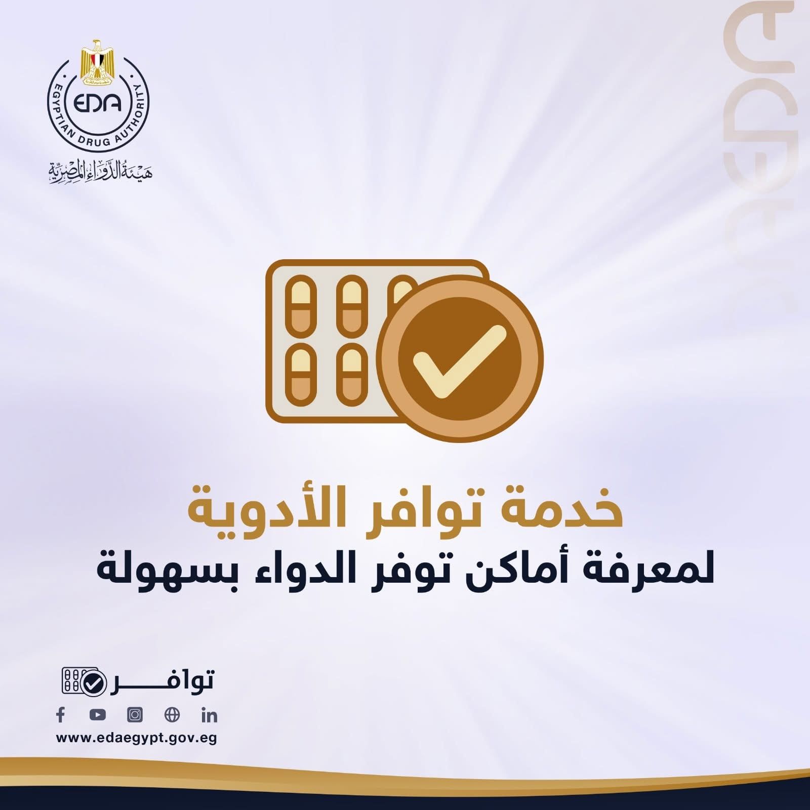 الأحد، 12 أبريل 2026 02:37 مفي إطار جهود الدولة لتطوير الخدمات الصحية الرقمية وتسهيل حصول المواطنين على الدواء، أعلنت هيئة الدواء المصرية عن إتاحة خدمة جديدة تحت عنوان "توافر الأدوية"، والتي تهدف إلى مساعدة المرضى في الوصول إلى أماكن توفر الأدوية بسرعة وسهولة دون عناء البحث في الصيدليات.
