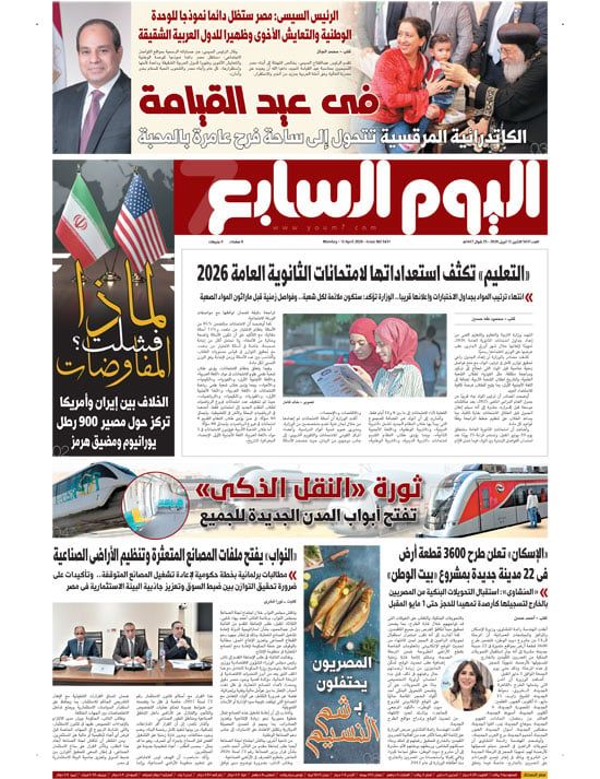 ينشر "اليوم السابع" فى عدده الصادر غدا، تفاصيل هامة حول العديد من الأحداث الجارية على الساحتين الداخلية والخارجية أبرزها: الرئيس السيسى: مصر ستظل دائما نموذجا للوحدة الوطنية والتعايش الأخوى وظهيرا للدول العربية الشقيقة.. التعليم تكثف استعداداتها لامتحانات الثانوية العامة