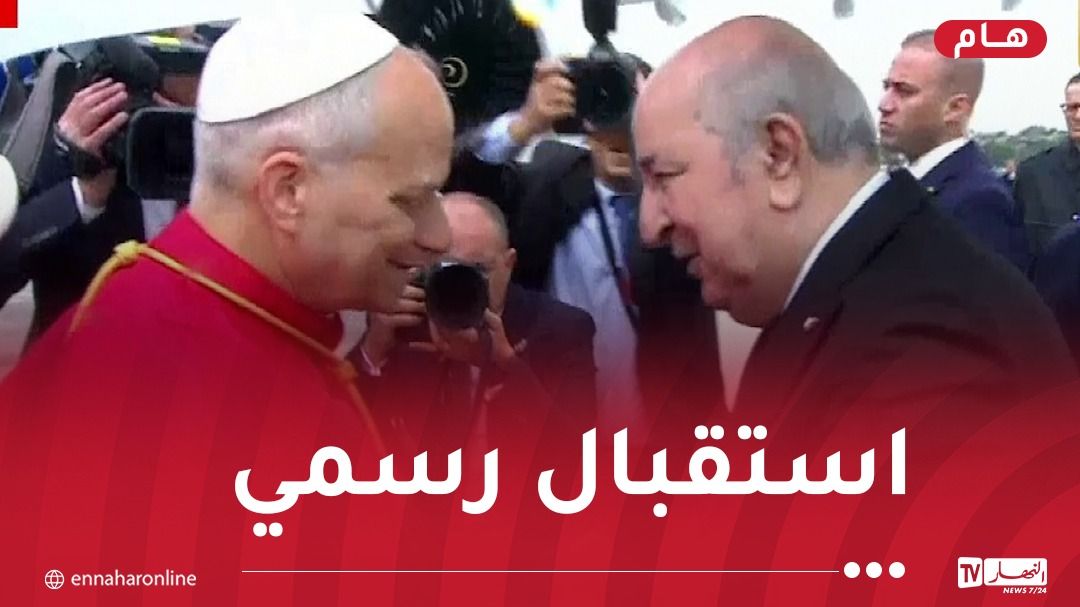 خص، رئيس الجمهورية، عبد المجيد تبون، اليوم الاثنين، بابا الفاتيكان ليو الرابع عشر، باستقبال رسمي. في مطار هواري بومدين الدولي في العاصمة.