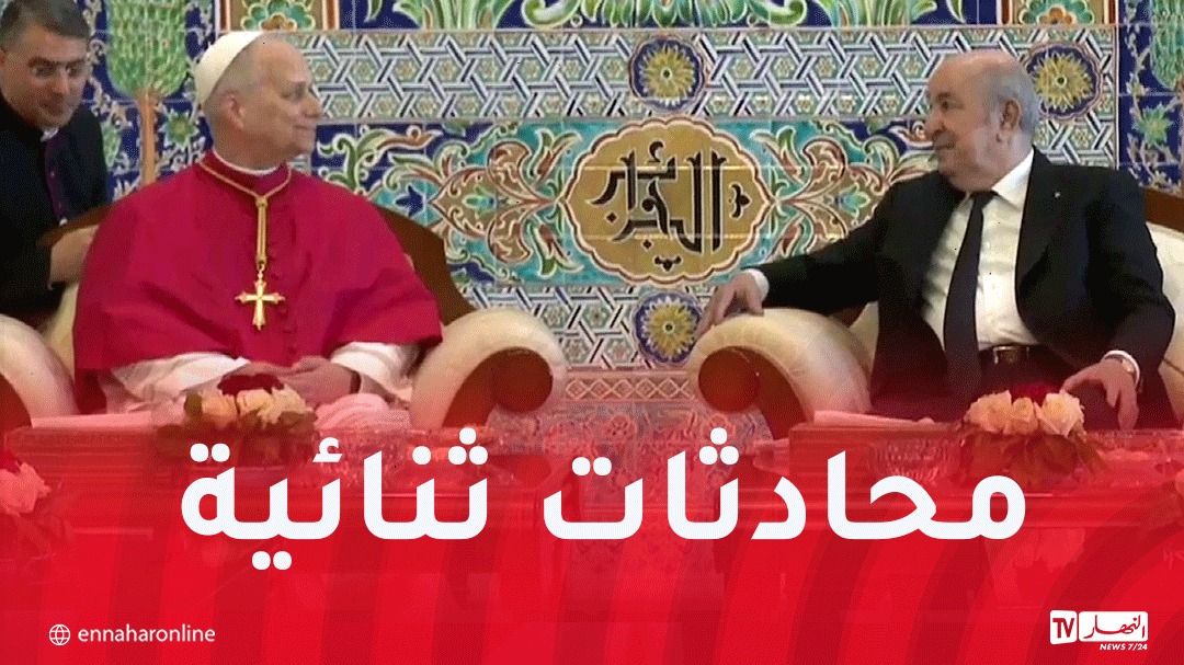 وجرت المحادثات على هامش الاستقبال الرسمي الذي خصه رئيس الجمهورية لبابا الفاتيكان ليو. وهذا في القاعة الشرفية لمطار هواري بومدين الدولي.