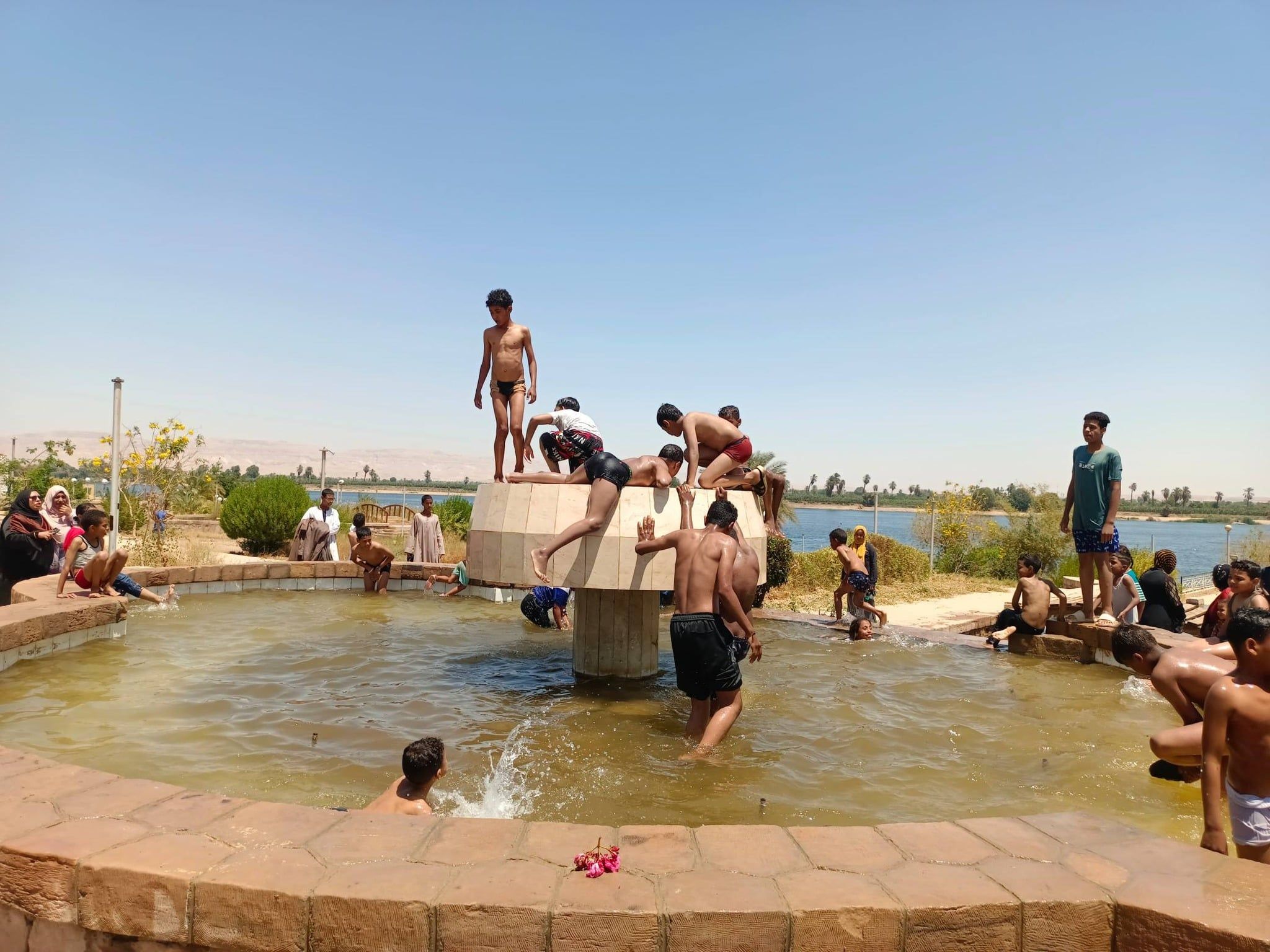 استمتاع الأطفال فى المياه بحدائق إسنا