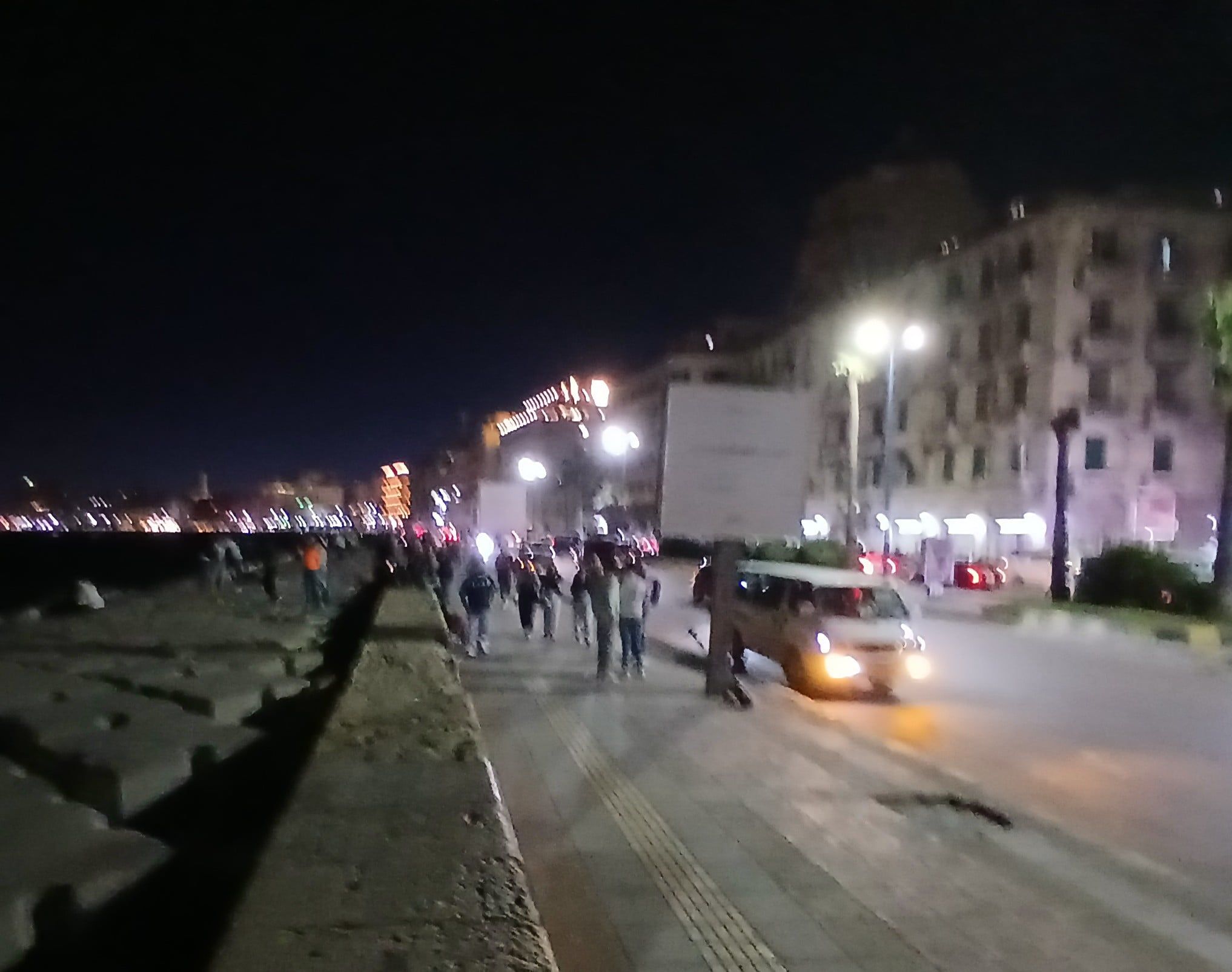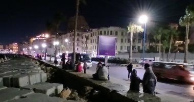 المواطنين يستمتعون بأجواء شم النسيم علي كورنيش الإسكندرية