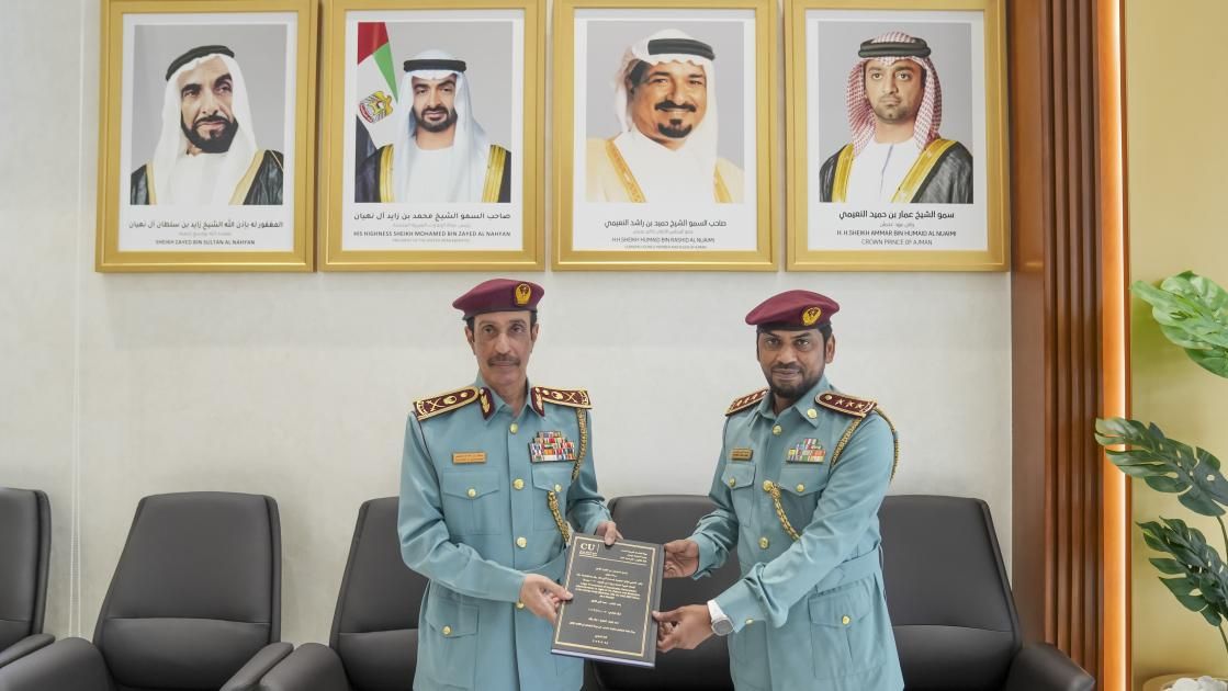وتوجه قائد عام شرطة عجمان بالشكر إلى النقيب محمد ثاني القمزي على هذا الإهداء القيم، مشيداً بموضوع رسالته وأهميتها، ومتمنياً له التوفيق.