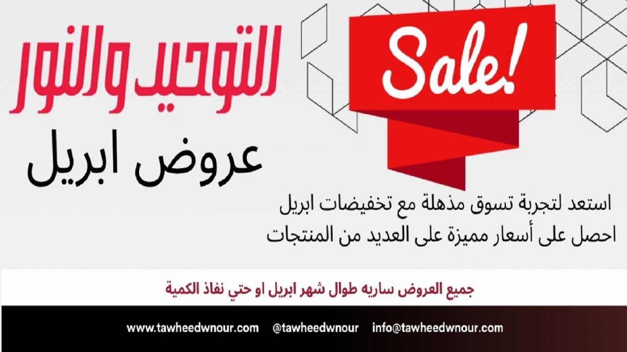 العروض سارية من 14 ابريل حتى 30 ابريل 2026 عروض ابريل فى كل فروع التوحيد والنور