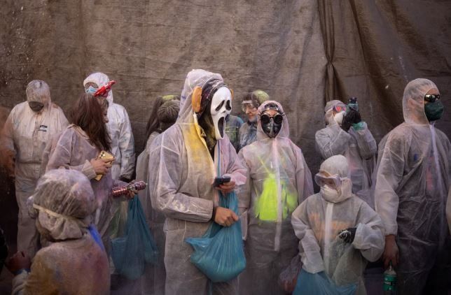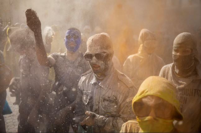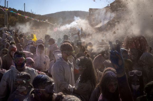 شهدت بلدة جالاكسيدي الساحلية اليونانية فعاليات الكرنفال التقليدى "حرب دقيق" أو المعروفة بالفوضوية الملونة وذلك احتفالاً بنهاية موسم الكرنفال السنوي الذي يمثل بداية موسم الصوم الكبير.