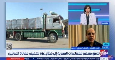 وأوضح «القصاص» خلال مداخلة هاتفية عبر قناة إكسترا نيوز، أن المساعدات المصرية تتنوع بين خيام وكرفانات ومواد غذائية وطبية، بالإضافة إلى الوقود، مشيرًا إلى إدخال كميات كبيرة من المساعدات خلال فترات زمنية متقاربة، في إطار جسر إغاثي ممتد لم ينقطع رغم تعقيدات المشهد.