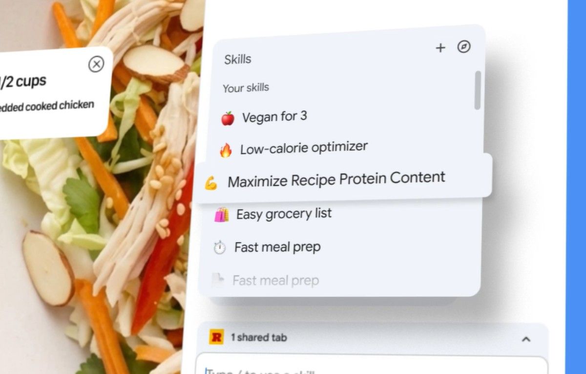 وتحمل الميزة الجديدة اسم “المهارات Skills“، وهي تُمكّن المستخدم من حفظ أي أمر (Prompt) يستخدمه داخل Gemini، ثم تشغيله لاحقًا عبر عدة علامات تبويب بنقرة واحدة. وتشمل الاستخدامات الشائعة مهام مثل تعديل وصفات الطعام لتناسب أنظمة غذائية محددة، أو مقارنة مواصفات المنتجات في أثناء التسوق عبر الإنترنت.