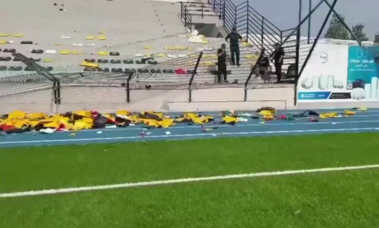 ممّا أسفر عن تكسير عدد كبير من الكراسي وإلحاق أضرار بالبنية التحتية للمدرّجات.