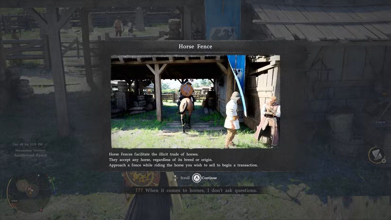 ولحسن الحظ، يضم Saddlewind Ranch أحد تجار الخيول المسروقة، ما يجعله موقعًا مثاليًا للتخلص من الخيول التي حصلت عليها بطرق… غير قانونية.