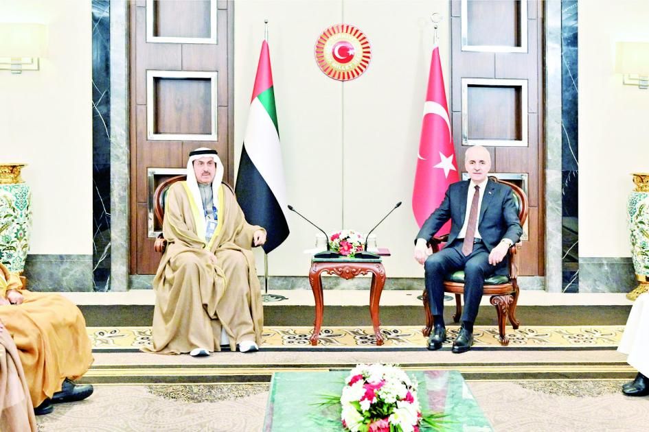 التقى صقر غباش، رئيس المجلس الوطني الاتحادي، نعمان كورتولموش، رئيس الجمعية الوطنية الكبرى لتركـــيا، وذلك خلال زيارته الرسمية للمشاركة في اجتماعات الجمعية العامة 152 للاتحاد البرلماني الدولي، والدورة الـ217 للمجلس الحاكم، التي تستضيفها الجمعـــية في إسطنبول.