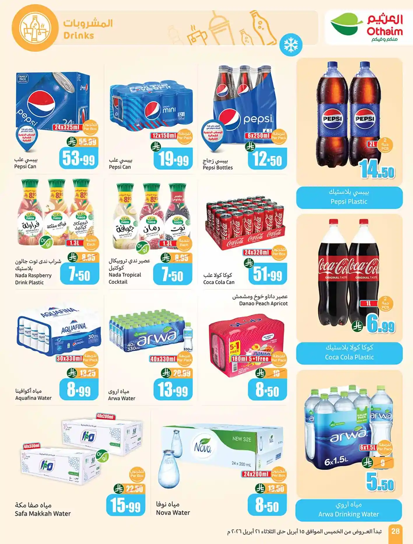 عروض نت تقدم لكم احدث عروض العثيم السعودية اليوم الجديدة فى صفحة واحدة – العروض الاسبوعية من اسواق العثيم هايبر ماركت – و ذلك من 15 ابريل حتى 21 ابريل 2026 او حتى نفاذ الكمية من اسواق عبد الله العثيم السعودية بجميع الفروع.