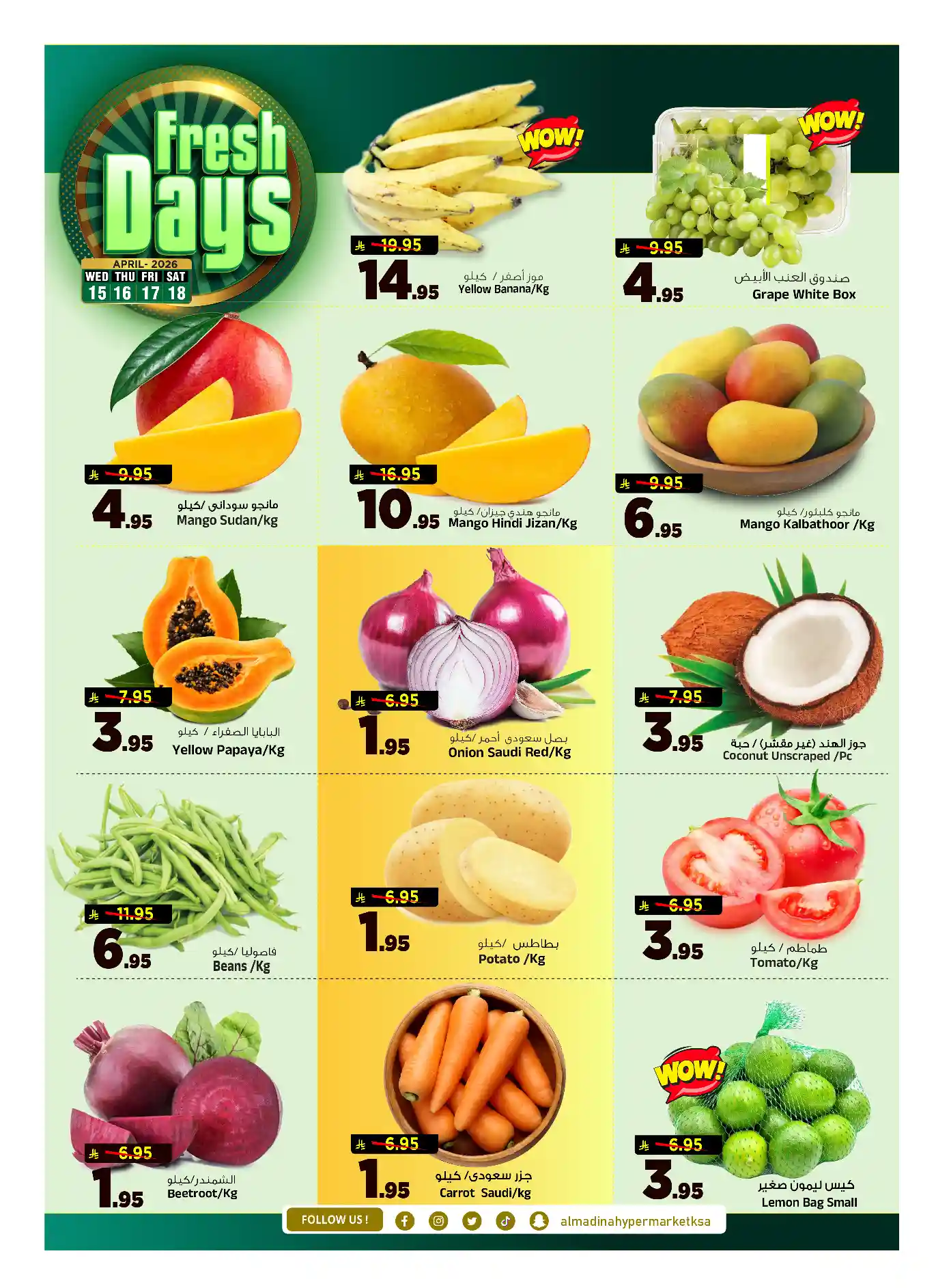 عروض نت تقدم لكم احدث عروض المدينة هايبر ماركت الرياض اليوم الجديدة فى صفحة واحدة – العروض الاسبوعية من المدينة هايبر ماركت – و ذلك من 15 ابريل حتى 21 ابريل 2026 و حتى نفاذ الكمية من المدينة هايبر ماركت بجميع الفروع.