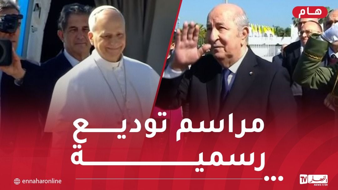 أشرف، اليوم الأربعاء، رئيس الجمهورية عبد المجيد تبون، على مراسم توديع ضيف الجزائر بابا الفاتيكان ليو الرابع عشر. وهذا في مطار الجزائر الدولي هواري بومدين في العاصمة. وهذا عقب زيارة رسمية أداها إلى الجزائر دامت يومين.