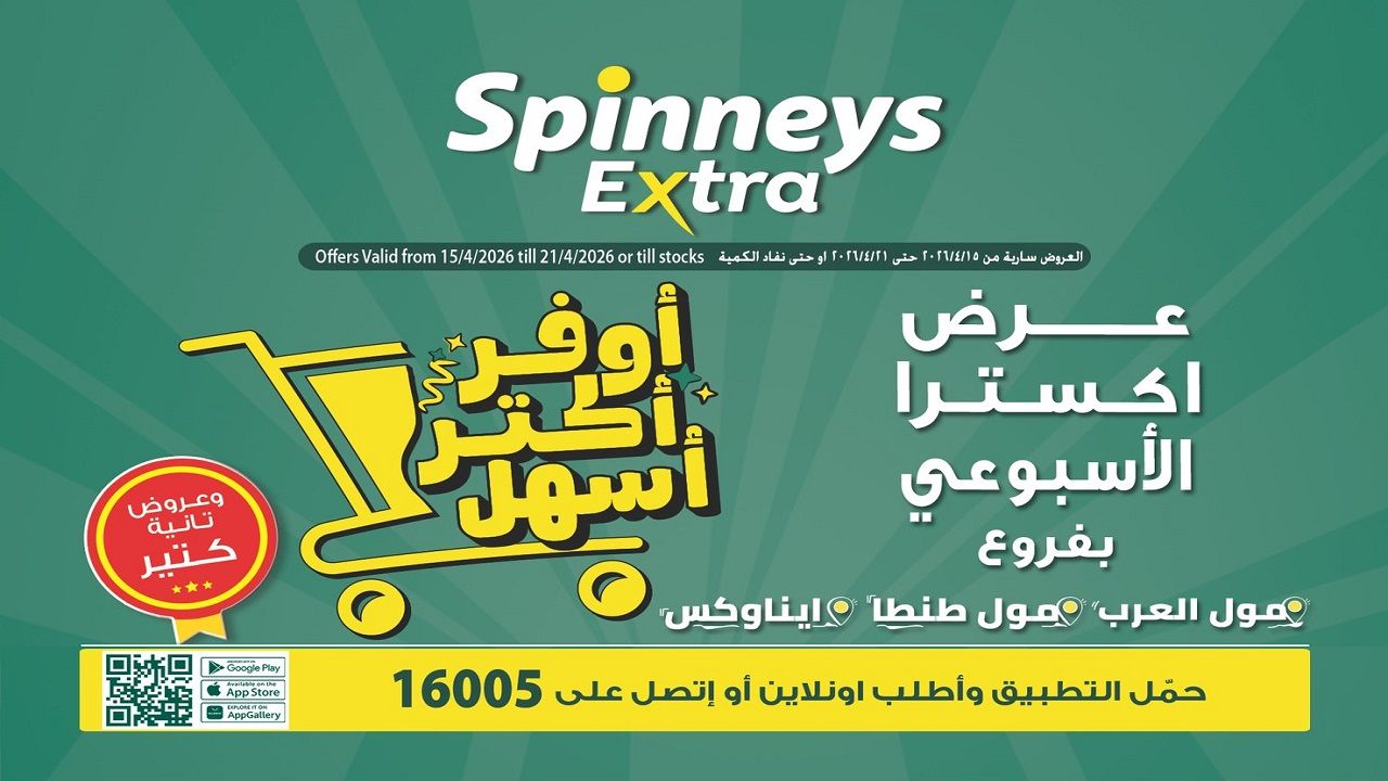 العروض سارية من 15 ابريل حتى 21 ابريل 2026 اكسترا توفير فى جميع فروع سبينس