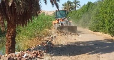 إزالة 6 حالات تعد على مساحة إجمالية بلغت 2600 متروأسفرت الحملات عن إزالة 6 حالات تعد على مساحة إجمالية بلغت 2600 متر مربع، وذلك بإشراف من النوبي حجاجي، نائب رئيس المركز، وبالتعاون مع رؤساء القرى والجهات المختصة، حيث شملت الأعمال إزالة حالة تعدٍ بزراعة أشجار ونخيل على أملاك دولة مخصصة واتخاذ اللازم نحو ضمان عدم العودة بالتعدي، وكذلك حالة ردم حفر قواعد "بدون ترخيص"، وإزالة أعمدة دور أرضي "بدون ترخيص" بقرية حاجر الضبعية، وإزالة أعمدة دور أرضي تعدٍ على أرض زراعية بقرية الملاحة، وإزالة حالتي أعمدة دور أول علوي بدون ترخيص رصدتها منظومة المتغيرات المكانية بقرية البعيرات، وقد تم اتخاذ كافة الإجراءات القانونية حيال المخالفين تأكيداً على هيبة الدولة.