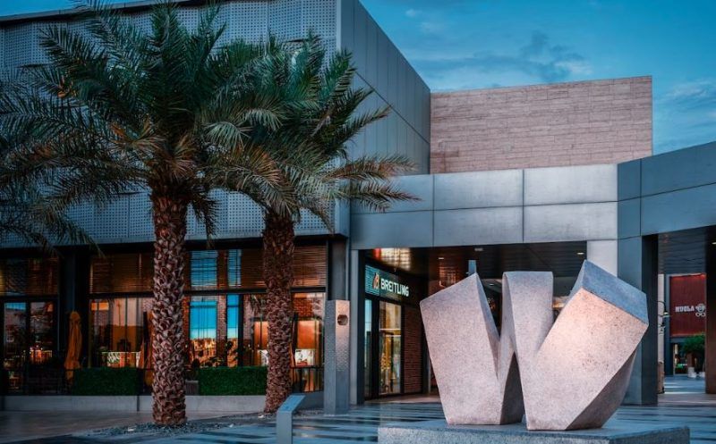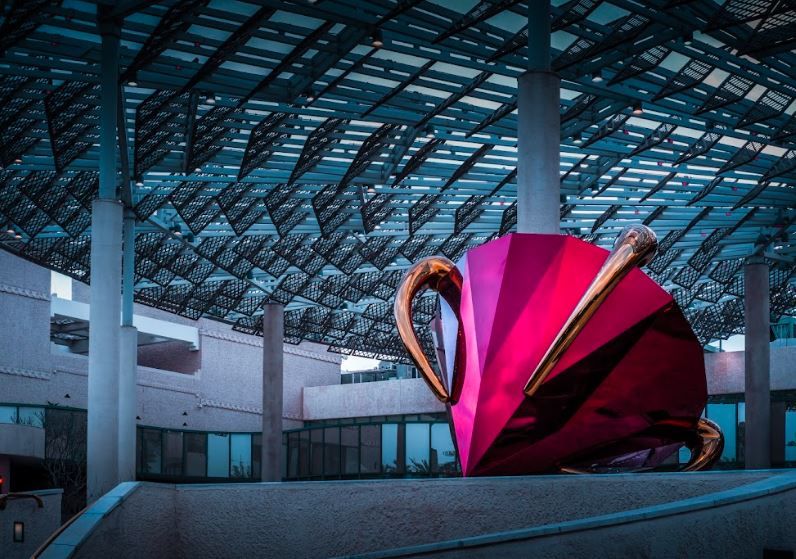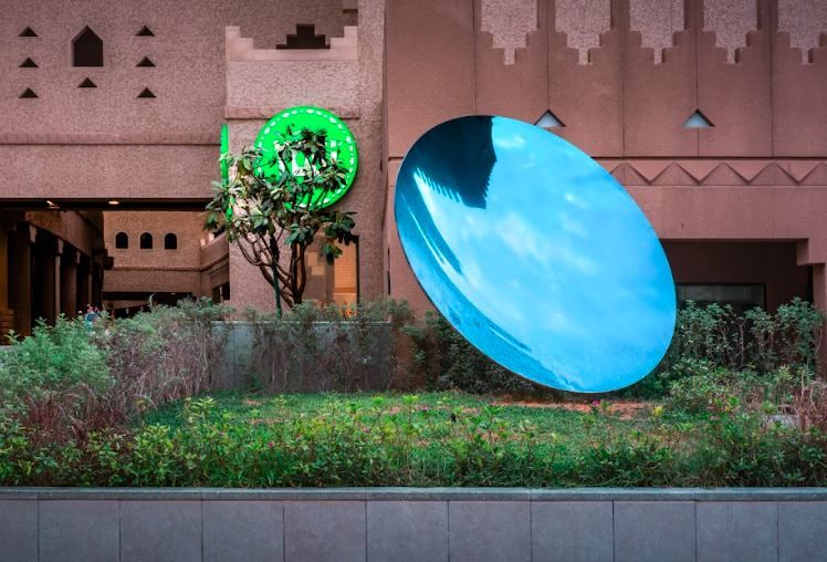 وفي الحي الدبلوماسي، يضفي كل من «الماسة (أحمر)» لجيف كونز و«مرآة السماء – الأزرق» لأنيش كابور حضورًا لافتًا في المشهد الحضري عبر اللون والانعكاس.
