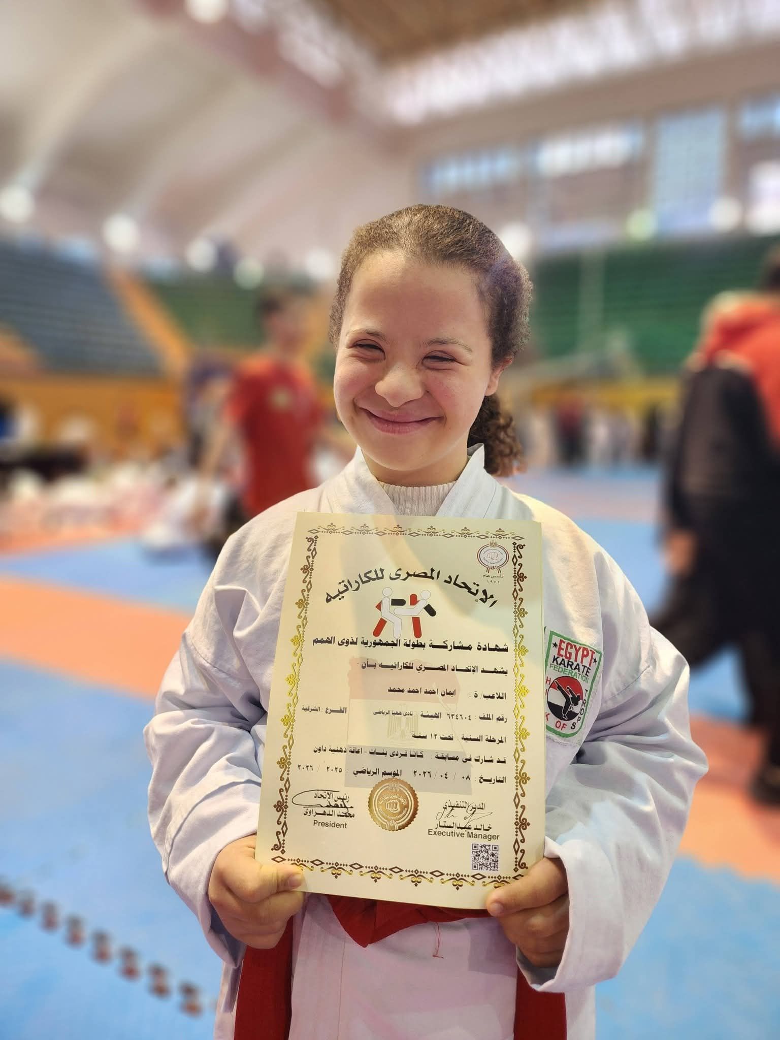 الخميس، 16 أبريل 2026 02:00 صإيمان أحمد النحاس بالصف الأول الإعدادى من ذوى الهمم، برعت فى لعبة الكاراتيه وحصدت مركز سابع جمهورية فى بطولة الجمهورية الفردية الأساسية، تحت 12 سنة والتى تمت بالصالة المغطاة بجامعة حلوان.