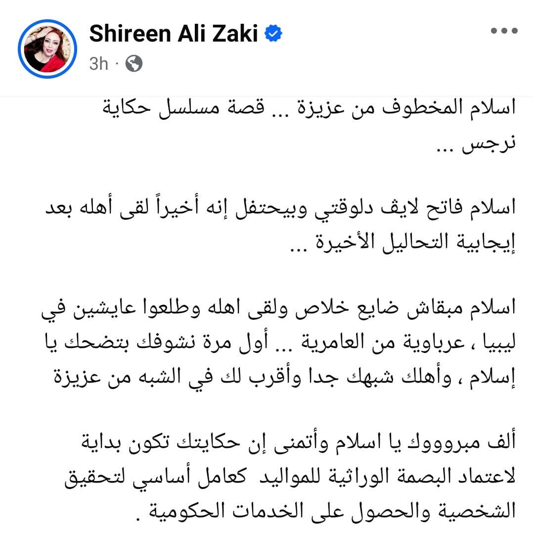 الخميس، 16 أبريل 2026 04:28 صوجه رواد مواقع التواصل الاجتماعي الشكر لصناع مسلسل حكاية نرجس وذلك بعدما أعاد المسلسل قصة إسلام المخطوف بطل القصة الحقيقة للواجهة مرة أخرى، خاصة بعدما خرج في بث مباشر ليعلن وصوله لأهله وان نتائج التحاليل أثبت جذوره التي تعود لعائلته الأصلية.
