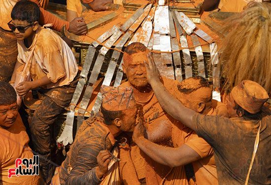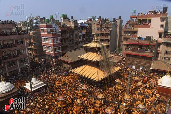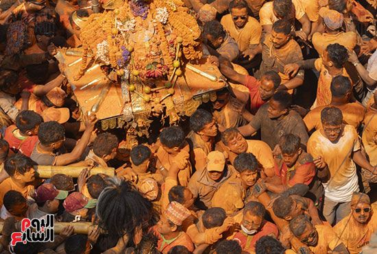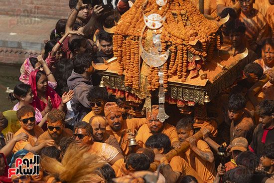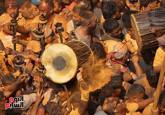 الخميس، 16 أبريل 2026 06:00 صفى إطار احتفالات جمهورية نيبال بأعياد رأس السنة، يقام مهرجان Bisket Jatra الذى يحتفل فيه شعب نيبال من خلال تبادل قذف بعضهم ببودرة برتقالية اللون بدرجة تميل إلى الحمرة، كأحد التقاليد المتبعة فى احتفالات رأس السنة، ويقام المهرجان هذا العام فى مدينة Thimi التى تعتبر أحد ضواحى العاصمة النيبالية كاتامندو، بالإضافة إلى تواجد أنغام موسيقى النيوارى ، التى تعتبر أحد تقاليد شعب دولة نيبال فى الاحتفالات الشعبية والرسمية.