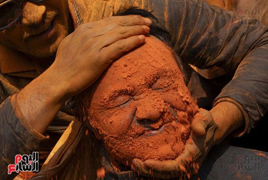 ونقلاً عن وكالة الأنباء الأوروبية ننشر صور لشعب نيبال وهم يتبادلون إطلاق المواد برتقالية اللون فى جانب من الاحتفال، وينقسم الأشخاص إلى فريقين أحدهم من الشمال والآخر من الجنوب، ويحاول كلا الفريقين قذف الآخر بأكبر كمية من البودرة حتى يستنفذها ويفوز فى المهرجان.