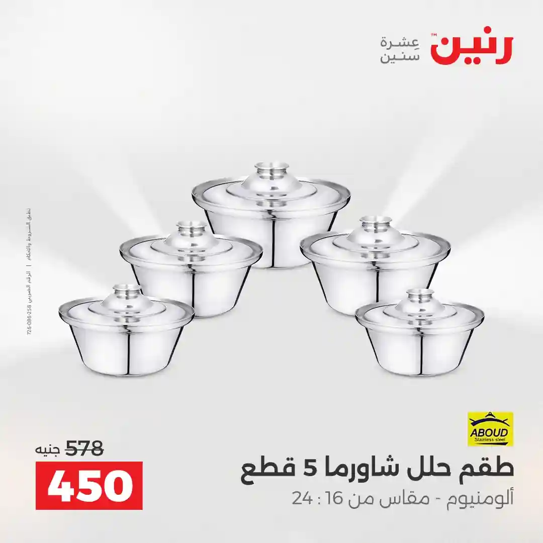 تسرى العروض من الجمعة 17 ابريل حتى السبت 18 ابريل 2026 اكتشفى منتجات مطبخك فى كل فروع رنين