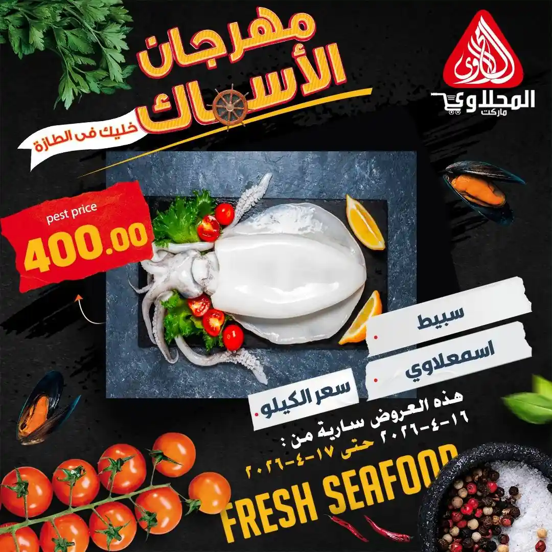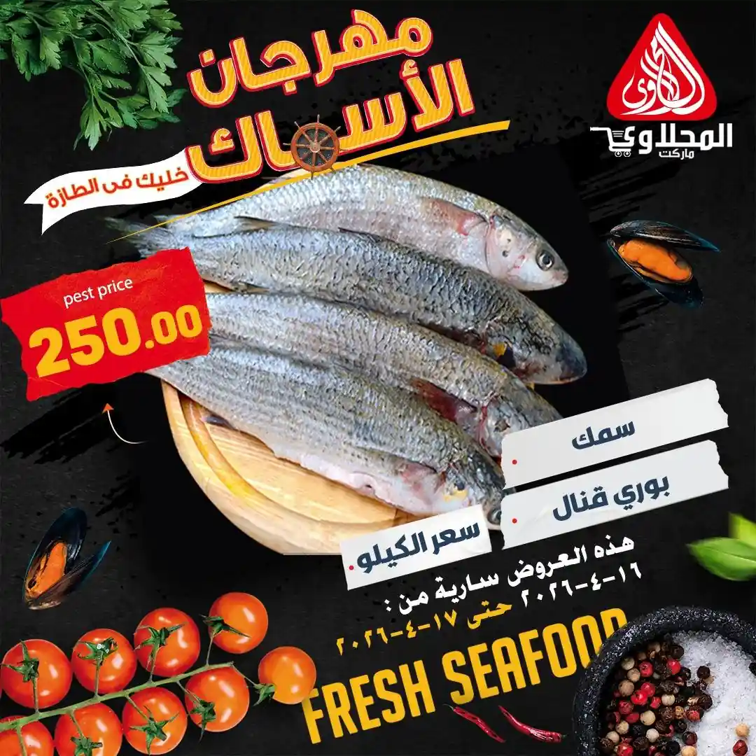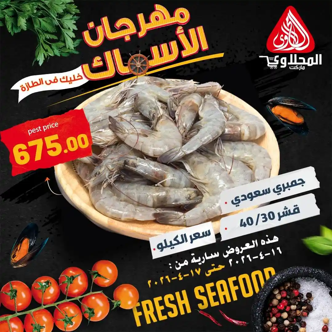 عروض و خصومات كبيرة متاحة الان فى المحلاوى ماركت اليوم باقوى الخصومات لفترة محدودة 16 ابريل و 17 ابريل 2026 فى كل فروع المحلاوى ماركت