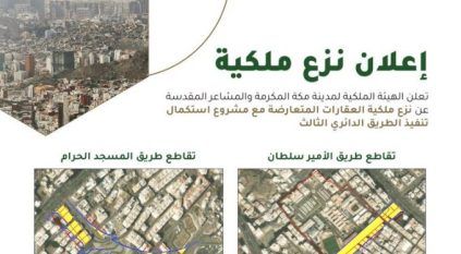 أعلنت الهيئة الملكية لمدينة مكة المكرمة والمشاعر المقدسة مواصلة تنفيذ مشروع استكمال الطريق الدائري الثالث، الذي يمتد على مسافة (30) كيلومترًا تربط أحياء مكة المكرمة بمداخلها الرئيسية.