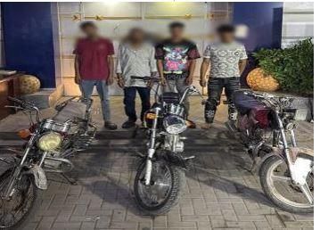 كما تم ضبط 3 عاطلين، لإثنين منهم معلومات جنائية، بدائرة قسم شرطة المعادي، لقيامهم بممارسة نشاط إجرامي تخصص في سرقة الدراجات النارية بأسلوب "قطع وتوصيل الأسلاك"، واعترفوا بارتكاب 3 وقائع سرقة بذات الأسلوب، وتم بإرشادهم ضبط المسروقات لدى عميلهم سيئ النية (عاطل – له معلومات جنائية – مقيم بدائرة قسم شرطة حلوان)، والذي أمكن ضبطه.